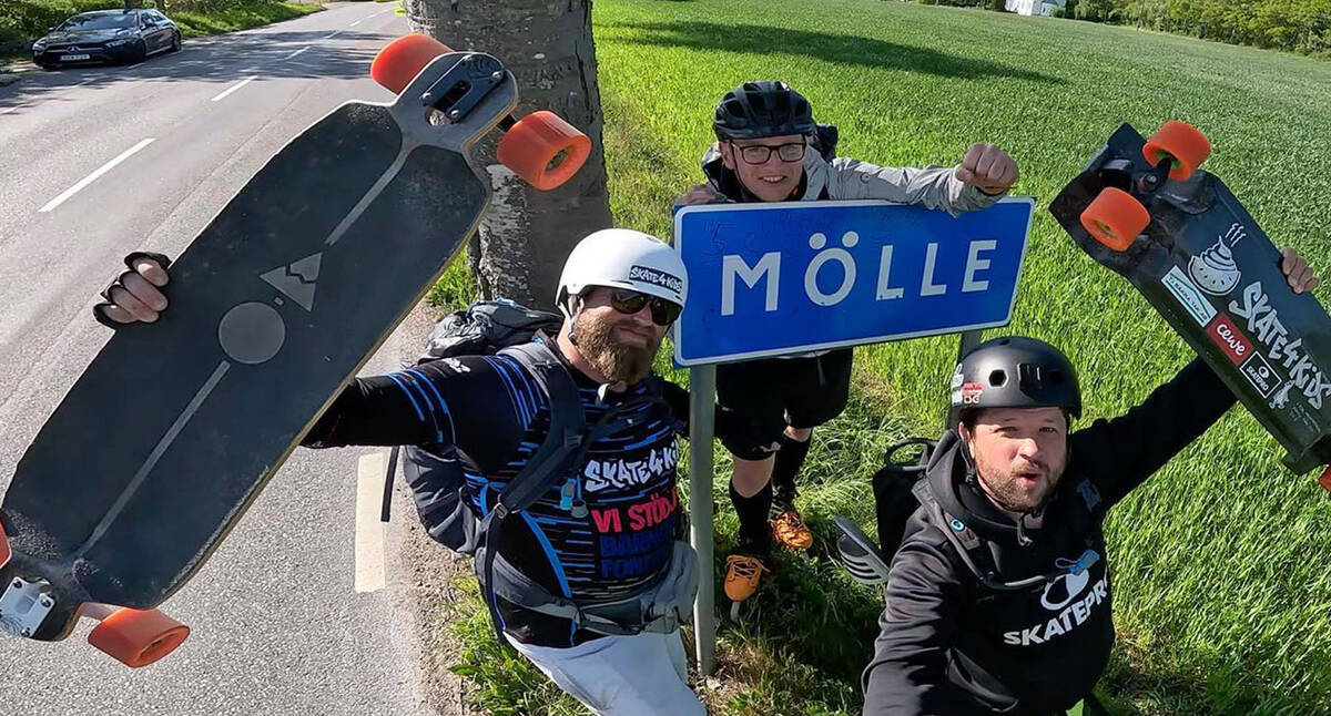 De 200 km lange tocht van Kungsbacka naar Mölle voerde de Skate4Kids-ploeg door de prachtige landschappen van Halland en Skåne. In slechts vier dagen in mei trotseerden ze bijna elk weertype - zonneschijn, regen, wind en alles daartussenin (maar gelukkig geen sneeuw!).
